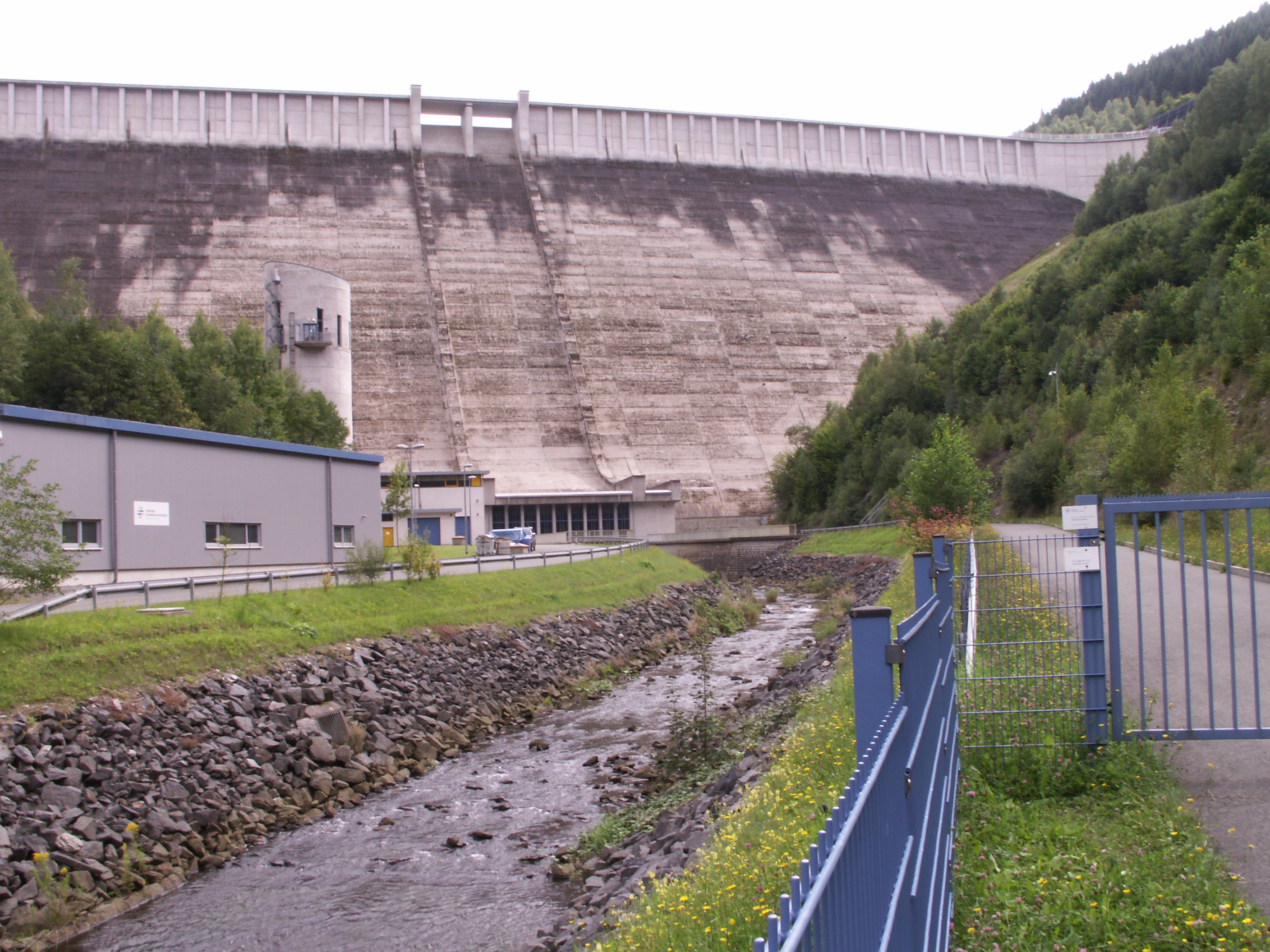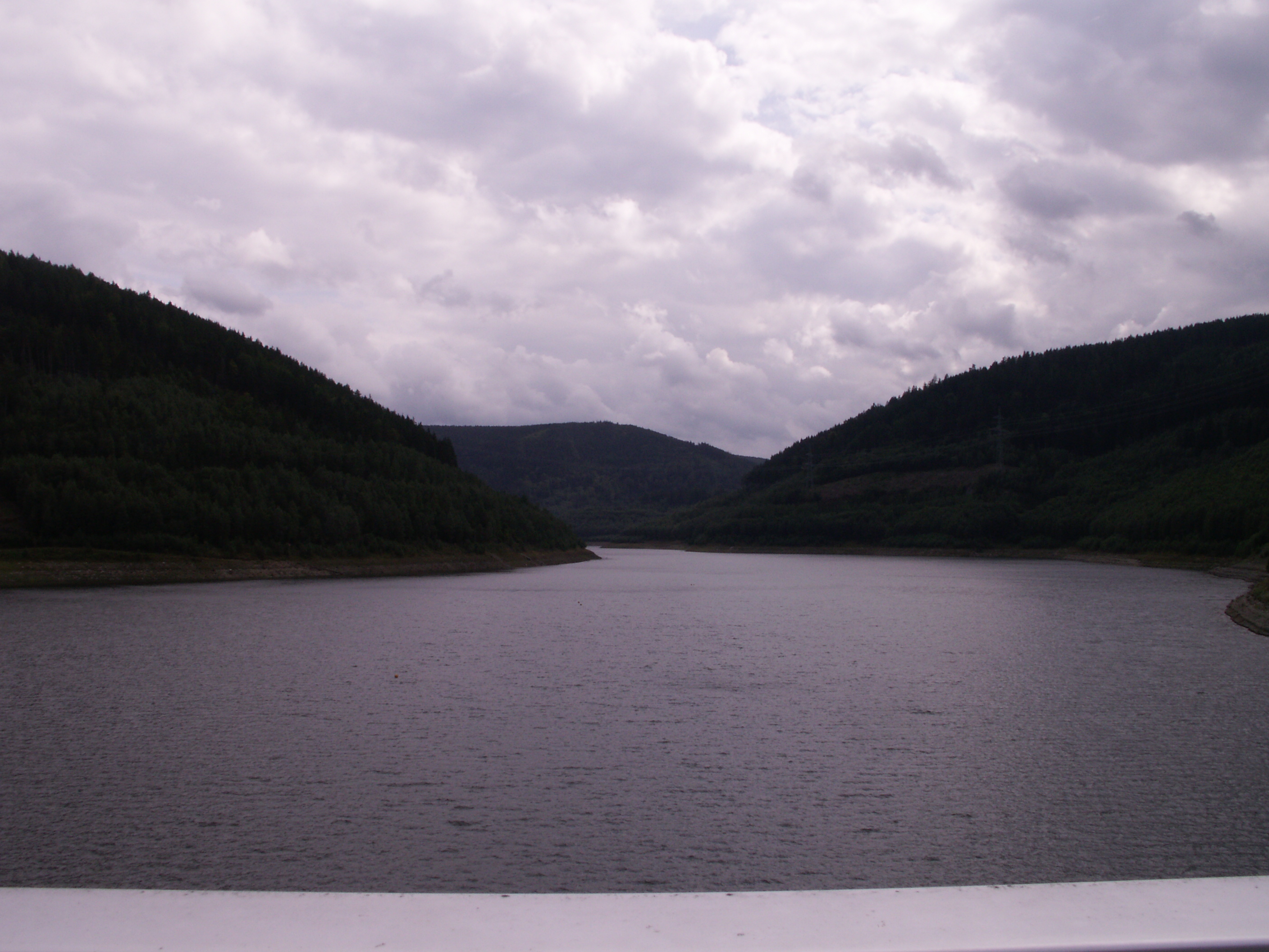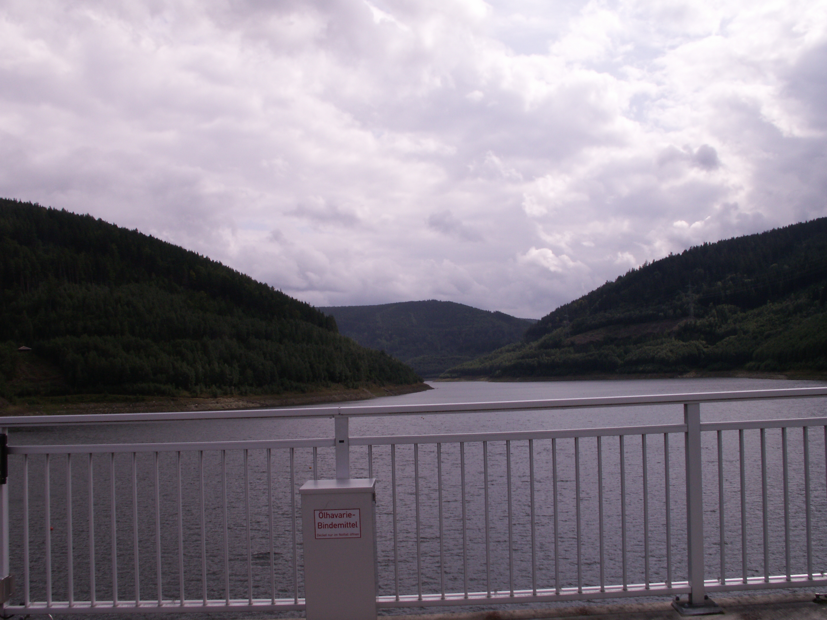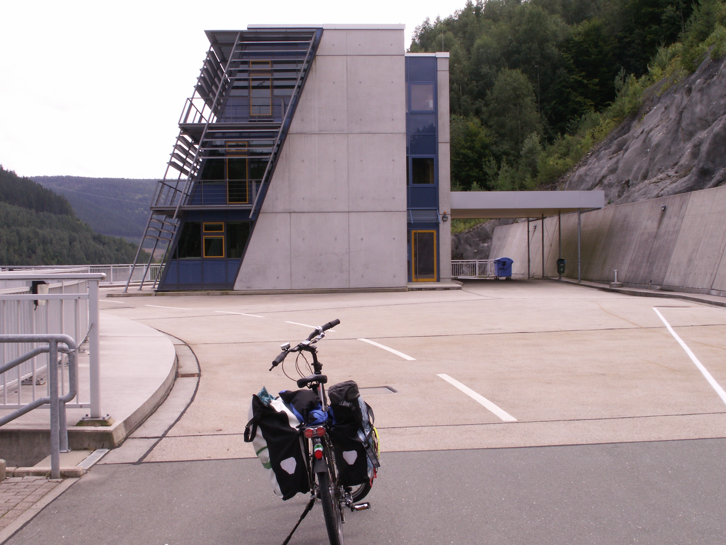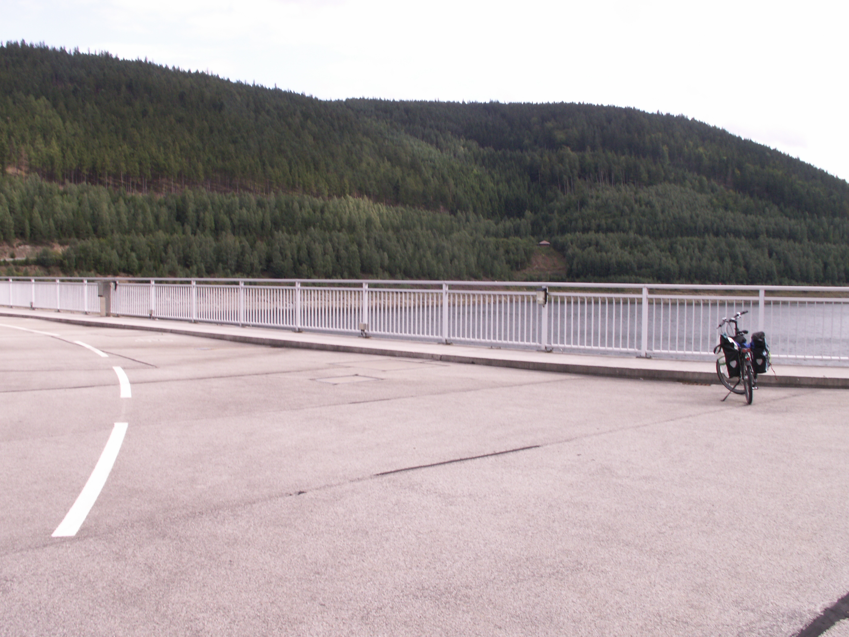 Endlich oben! Von Unterweißbach aus hatten wir einen Abstecher zur STaumauer gemacht: Talsperre Leibis-Lichte. Hier wird der Fluß Lichte zusammen mit anderen Gewässern gestaut. (Anstieg etwa 2km lang).