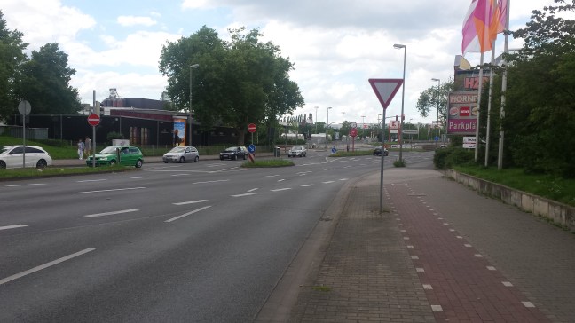 Hier wird die PopUpBikeLane am 3. Juni entlang laufen. eigenes FotoDie Treibstraße als Fortsetzung der Heiligegartenstraße: eine wichtige Verbindung Richtung Weststadt.