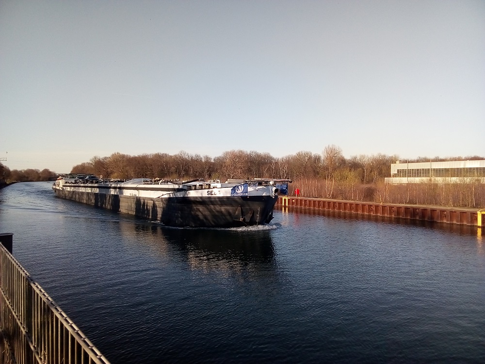 Majestätische Bewegung und Klang: Frachtschiff auf dem Dortmund-Ems-Kanal.