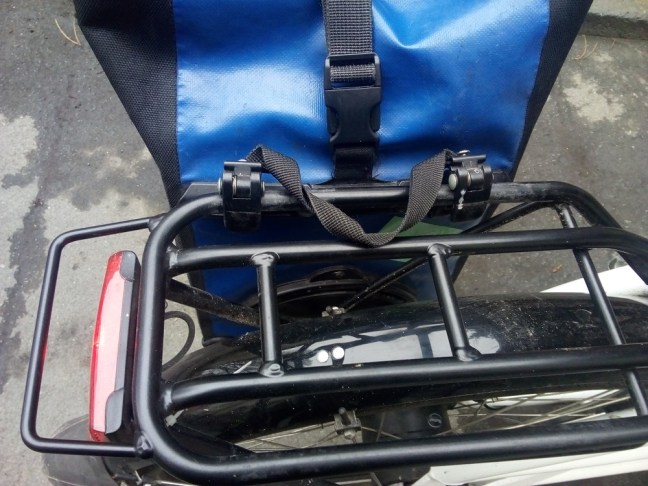 Zu viel für ein Trekkingrad: 2 volle Taschen gewaschene Wäsche.