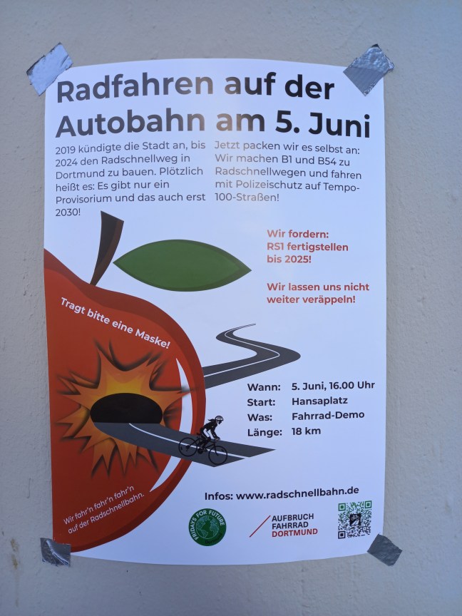 Die Anstrengungen der Stadt Dortmund geschehen immer nur so halb und dazu noch zeitverzögert. Andere Städte sind in Sachen Verkehrswende schon viel weiter, haben sich vor Jahren oer Jahrzehnten schon auf den Weg gemacht, den Autoverkehr, der ein Haupttreiber in Sachen Klimawandel ist, einzudämmen. Ganz so, als ob man dieser neuen Entwicklung in anderen Städten (Autoverkehr raus aus der Friedrichstraße in Berlin und Parkbänke hin, Vorrang für Radfahrende und Fußgänger entlang der Seine in Paris, Streichung von Parkplätzen) nicht so recht trauen würde. Und eine Gleichgültigkeit bis hin zur Verachtung, weil man auf diese ganzen verrückten Ökofuzzis mit ihren Fahrrädern ohnehin keinen Bock hat. Hach, was mache ich denn bei Schnee, Kälte, Regen?? Da kann man doch nicht Rad fahren! Jo, wenn wir unsere Mobilität nicht ändern, dann könnte es mit den häufiger auftretenden Stürmen klappen. doch wollen wir das? Woher kommt diese fast schon krankhafte Abhängigkeit, dieses Nicht-Begreifen-Wollen daß das Auto für den MIV keine Zukunft haben kann??