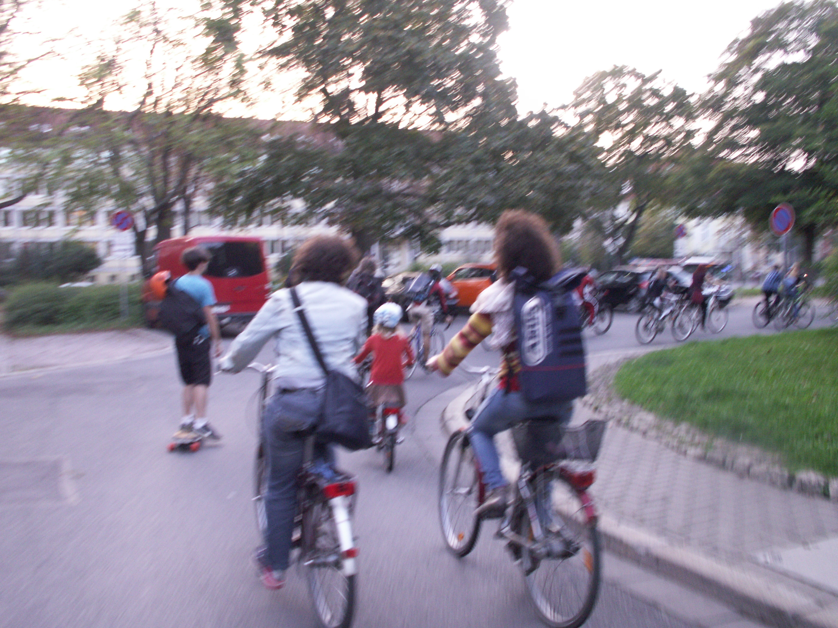 Meist sind es Monologe, seltener Dialoge, die auf der Bühne vorgetragen werden. Wie im antiken Theater stehen die Schauspieler_innen dort, mit Blick auf´s Publikum.Manchmal sprechen sie auch im Chor. Dennoch wird es nicht langweilig… dafür sorgt die Geschichte selbst, bei der nach und nach immer mehr Hintergründe zum Vorschein kommen; warum gerade die 4jährige Tochter Jana der Lehrerin Raha sterben mußte, wieso „Schüler A“, Jakob, einerseits intelligent und Preisgewinner bei einem Forschungswettbewerb sein und gleichzeitig so grausam sein kann, indem er mit seiner Erfindung streunende Katzen quält und tötet. Musik ist auch dabei, und dabei recht gute! Meine Freundin D. hörte u. a. Nirvana heraus 😀 Ich hätte glatt mittanzen mögen, als der Abschlußball der Schule imitiert wurde. Der Schauspieler des Jakob schaffte es sogar, auf dem Hochsitz abzurocken ohne runterzufallen ;-)))