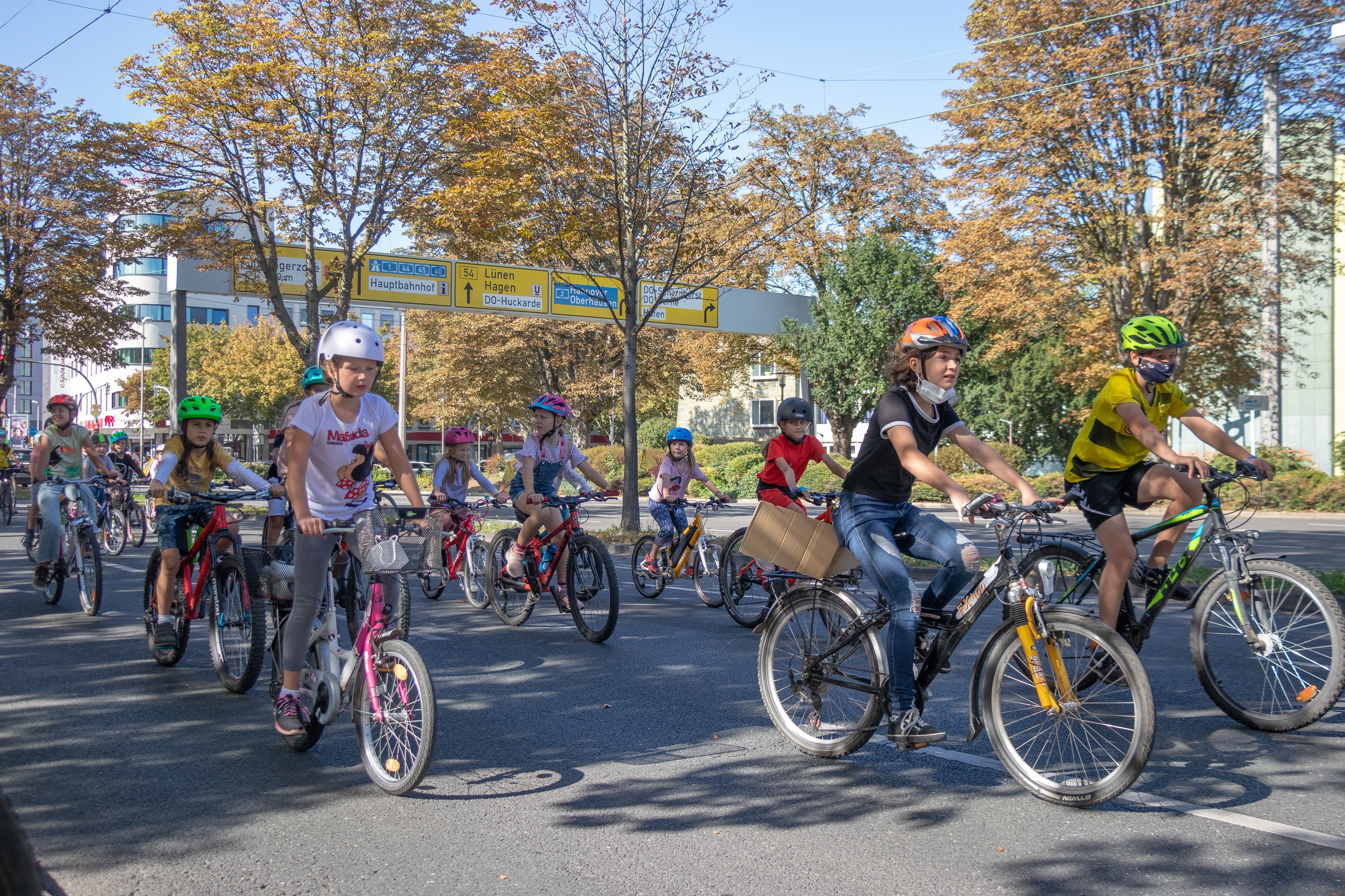 Kein durchgängig strahlender Sonnenschein, aber gutes Wetter und kein Sonnenbrand – das waren gute Voraussetzungen für die Kidical Mass im September 2021. Ich war als Ordnerin beim Zubringer in Eving, einem Stadtteil im Norden, dabei. Es waren nur wenige Kinder, die kamen, ein Polizist sprach scherzhaft von einer „1 zu 1-Betreuung.“ Alle Zubringer und die Kidical Mass-Hauptroute wurden von der Polizei Dortmund begleitet. Manch einer musste dabei seine Fahrkünste zur Schau stellen, wenn man schnell wieder nach vorne fahren wollte, um die nächsten Querstraßen abzusperren. Das sorgte für Verwunderung und ließ manche(n) die Nase rümpfen.