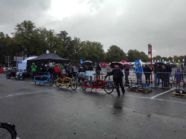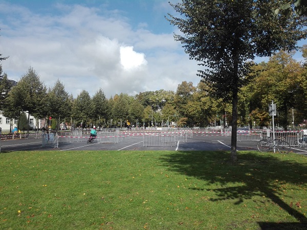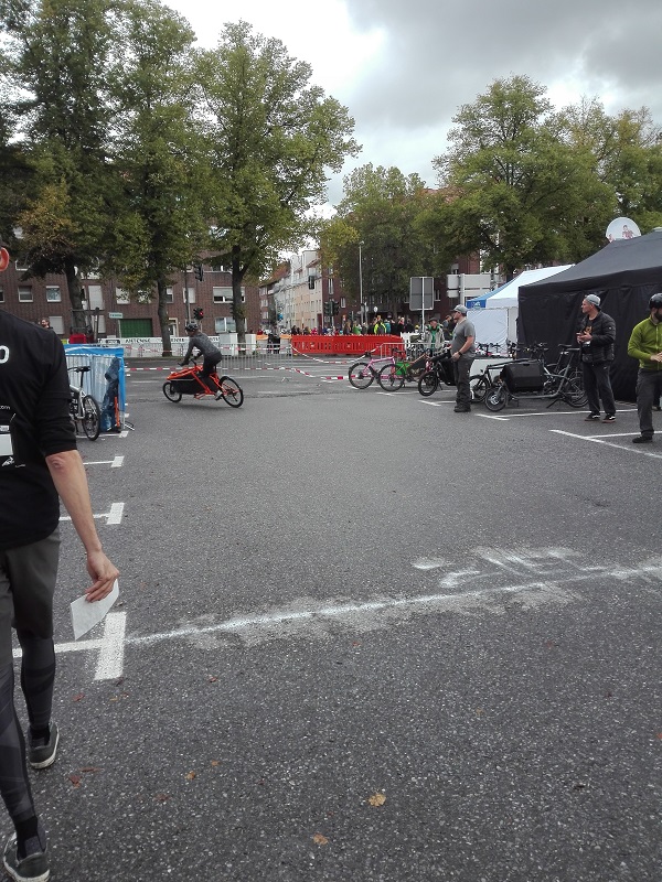 Bedauerlich allerdings, dass es praktisch keine Zufahrt zur Ausleihstation gibt. Warum? Es kann doch nicht die Lösung sein, solch ein breites Rad auf dem Gehweg, der auch zu schmal ist (weil die heiligen Parkplätze nie, niemals wegfallen dürfen), von und zur Station zu bewegen! Fastg übersieht man die Station, weil man nur Blech sieht, das davor steht.