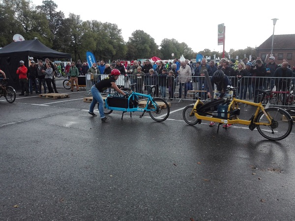 Als ich bei der Firma Dogewo21 nachfragte, hieß es, daß die Lastenräder schon verspätet angekommen wären, Ende Oktober wären sie endlich da gewesen. Man werde noch eine Pressemitteilung herausgeben. diese Information bekam ich per Mail Anfang November. Jetzt haben wir bald Mitte Dezember und es ist IMMER NOCH NICHTS auf http://www.dogewo21.de zu lesen. Nun, wenigstens habe ich schon einmal auch andere Leute mit einem sigo-Lastenrad und Dogewo-Werbung fahren gesehen. die Kinder, die auf der Sitzbank auf der Ladefläche saßen, schienen ihren Spaß zu haben.