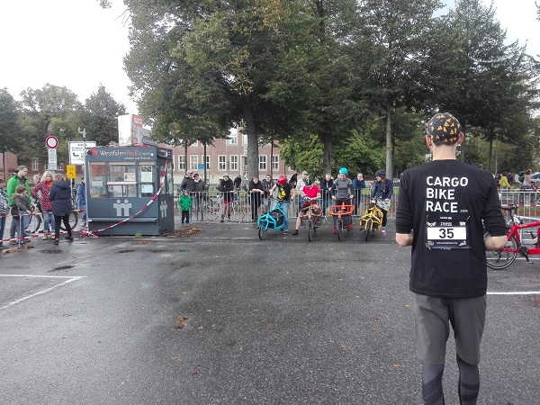 Als ich bei der Firma Dogewo21 nachfragte, hieß es, daß die Lastenräder schon verspätet angekommen wären, Ende Oktober wären sie endlich da gewesen. Man werde noch eine Pressemitteilung herausgeben. diese Information bekam ich per Mail Anfang November. Jetzt haben wir bald Mitte Dezember und es ist IMMER NOCH NICHTS auf http://www.dogewo21.de zu lesen. Nun, wenigstens habe ich schon einmal auch andere Leute mit einem sigo-Lastenrad und Dogewo-Werbung fahren gesehen. die Kinder, die auf der Sitzbank auf der Ladefläche saßen, schienen ihren Spaß zu haben.